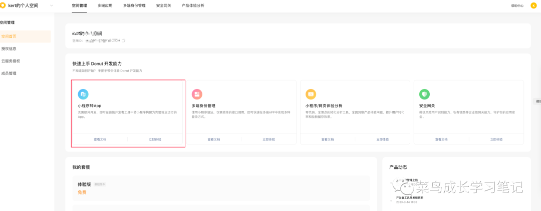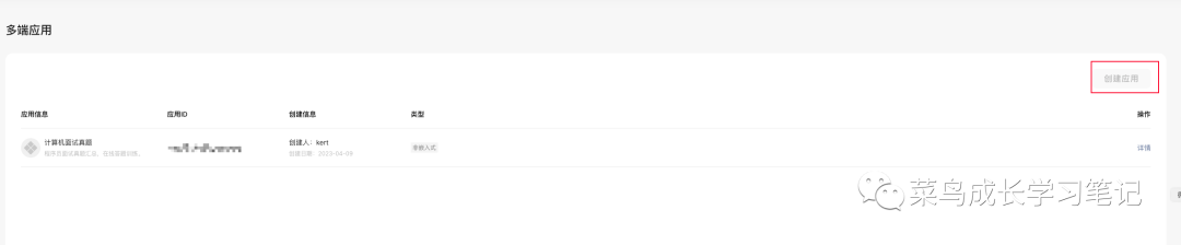 你直接点击小程序转App,点击免费体验即可进入到具体的配置界面。点击右上角的创建按钮,根据操作提示即可。由于我事先已经创建好了一个应用,这里的创建按钮就是灰色。