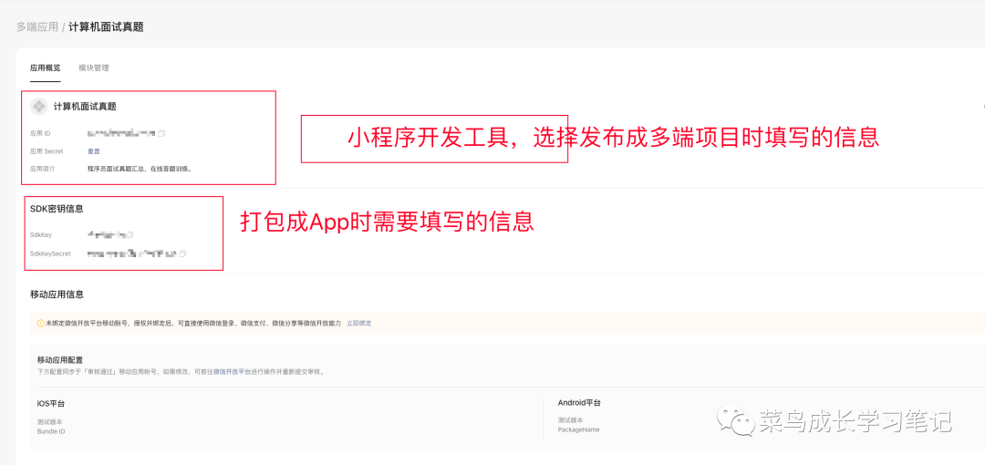 通过上面的操作,平台基本信息也创建成功了,接下来就可以直接使用微信开发者工具进行打包。需要注意的是,你微信开发者工具尽可能的更新到最新的版本,低版本可能没有该功能菜单。