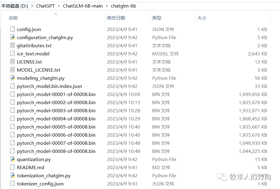 下载后解压到新建目录chatglm-6b:D:\ChatGPT\ChatGLM-6B-main\chatglm-6b