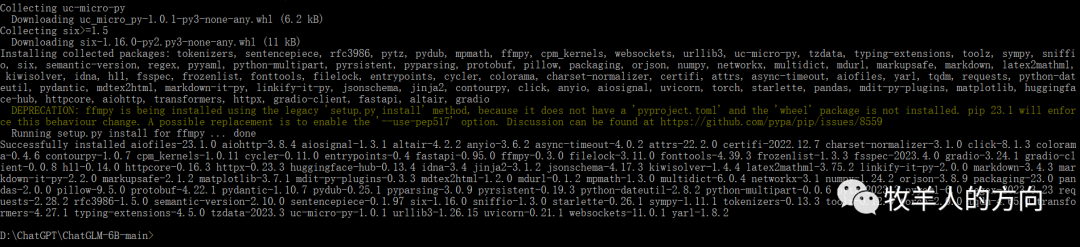 D:\ChatGPT\ChatGLM-6B-main>pip install -r requirements.txt