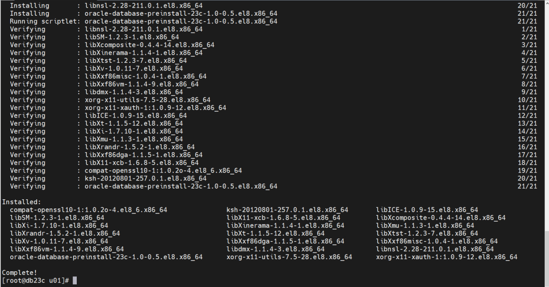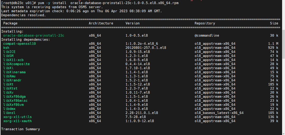 yum -y install oracle-database-preinstall-23c-1.0-0.5.el8.x86_64.rpm