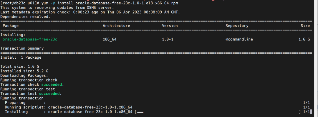 yum -y install oracle-database-free-23c-1.0-1.el8.x86_64.rpm