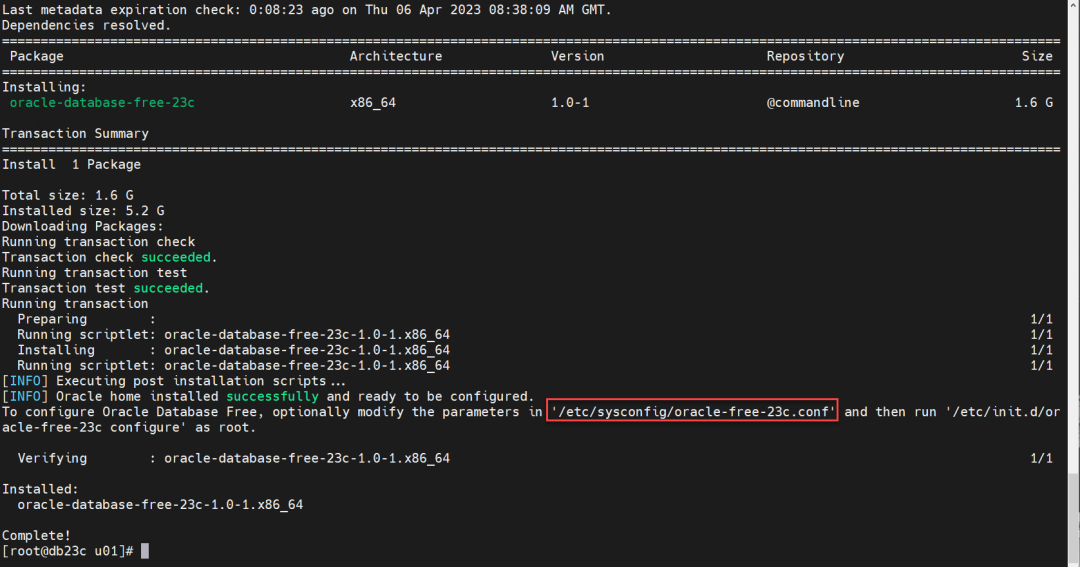 接下来使用root用户安装Oracle Database 23c。
