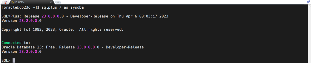 在数据库创建完成后,数据库实例和监听器都已经启动,您在配置oracle环境变量之后,即可连接数据库并体验23c带给您的方便与快捷了。