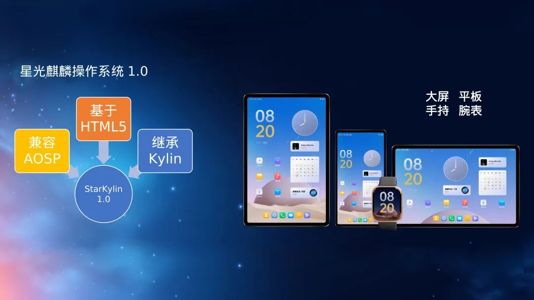 星光麒麟操作系统1.0具有“弹性扩展”、“内生安全”、“智能互联”和“统一框架”四大特性,全系统采用组件化设计,充分发挥了H5优势;实现了软硬一体可信安全体系,完成可信启动支持;智能互联方面,完成了智联相机、智联记事本两个多端协同应用,积累了支持分布式设备安全认证、互连互通和数据安全传输的SDK接口,并为AI交互体系构建SDK;实现了安卓应用在H5桌面上的融合,完成了统一框架上的准备。星光麒麟操作系统1.0已全面适配、覆盖国产主流移动芯片,基于Linux+H5技术路线,同时融合了AOSP软件栈来支持安卓应用生态。
