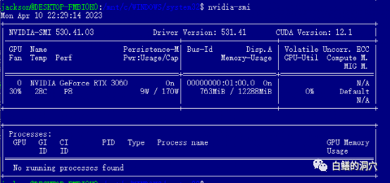 安装完WIN的驱动后就可以直接在WSL里安装cuda tools了,安装完毕后,运行nvidia-smi如果能够看到上面的界面,那么恭喜你,你已经成功地避开了第一个坑。实际上在安装cuda tools时候还会遇到几个小坑。那就是你的系统中必须安装合适版本的gcc,gcc-dev和make等编译相关的工具,如果缺少这些组件,cuda tools的安装会失败。