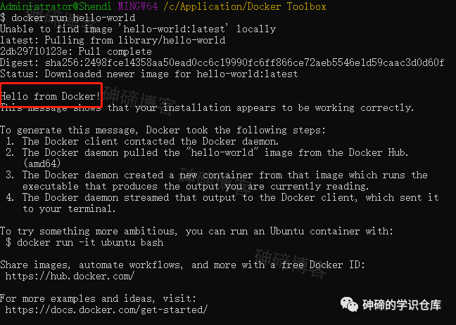 现在,您已经在Windows上成功安装Docker并成功运行一个Docker镜像了。