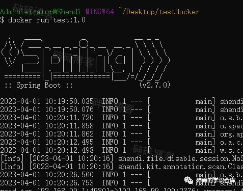 test代表镜像名称,1.0代表版本(镜像名称:镜像标签),版本可选,后面那个点代表当前目录(Dockerfile所在目录)