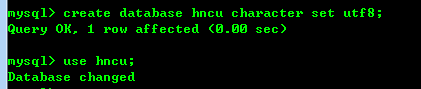 创建名为hncu编码为utf-8的数据库。