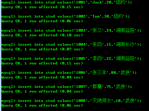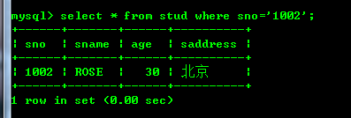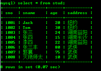 查看stud表的数据:
