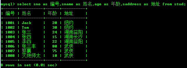 给列名取别名显示: