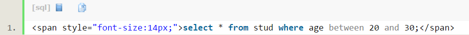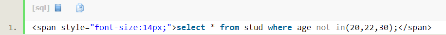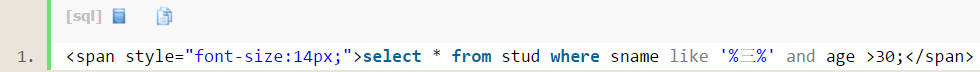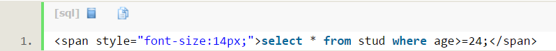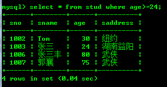 查询stud表格中age大于等于24的: