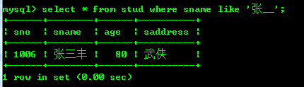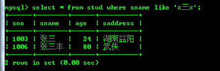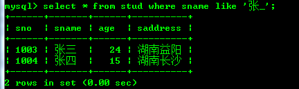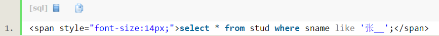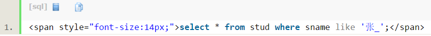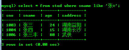 select * from stud where sname like '张%';