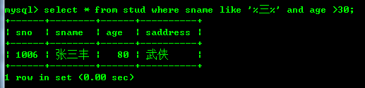 查询名字中带有‘三’的而且年龄大于30的: