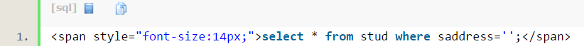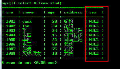作用是:如果stud表中有saddress为空(注意!是空,不是null),就查询显示出来。