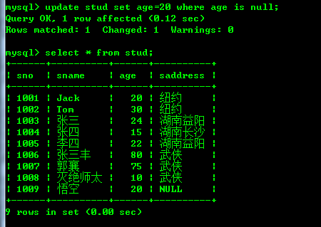 作用是:如果stud表格中哪行的age为null,就设置age为20.