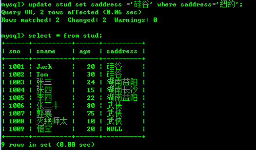 将saddress为纽约的改为硅谷