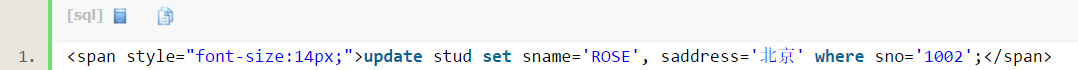 注意:不是:这里不能写成 update table stud set...;