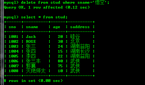 删除名字是悟空的行: