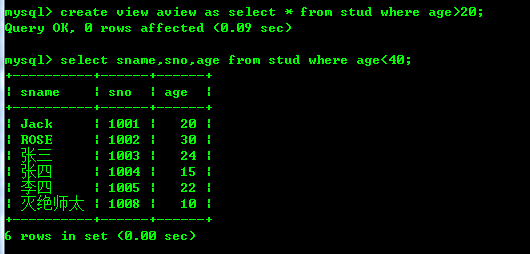创建视图:cerate view 视图名 as select 子句
