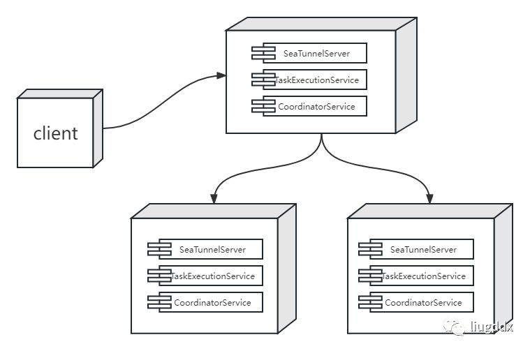 - taskGroup:每一个执行计划顶点将会创建一个taskGroup,一个taskGroup包含一个或者多个task,每一个taskGroup需要一个单位的计算资源。taskGroup是任务分配和执行的最小单位。如下: