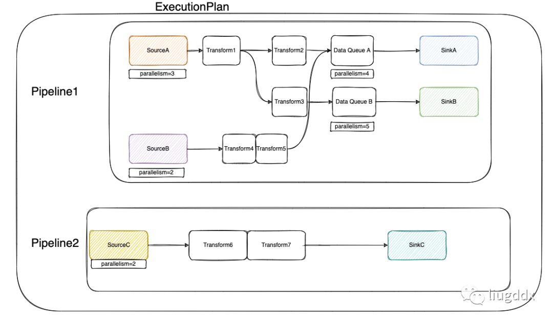 - pipeline:在pipeline中的任务只有pipeline的上游和下游算子,不同pipeline没有相关联的算子。