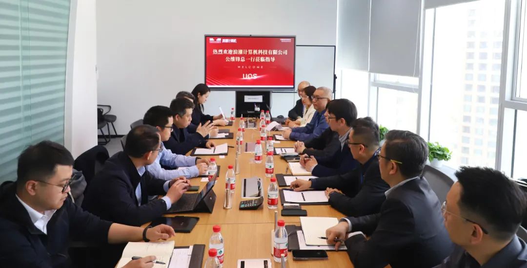 今天,浪潮计算机董事长兼总经理公维锋一行到访统信软件,与统信软件总经理刘闻欢、终端操作系统产线总经理王耀华、生态中心总经理朱靖等开展深度合作交流。
