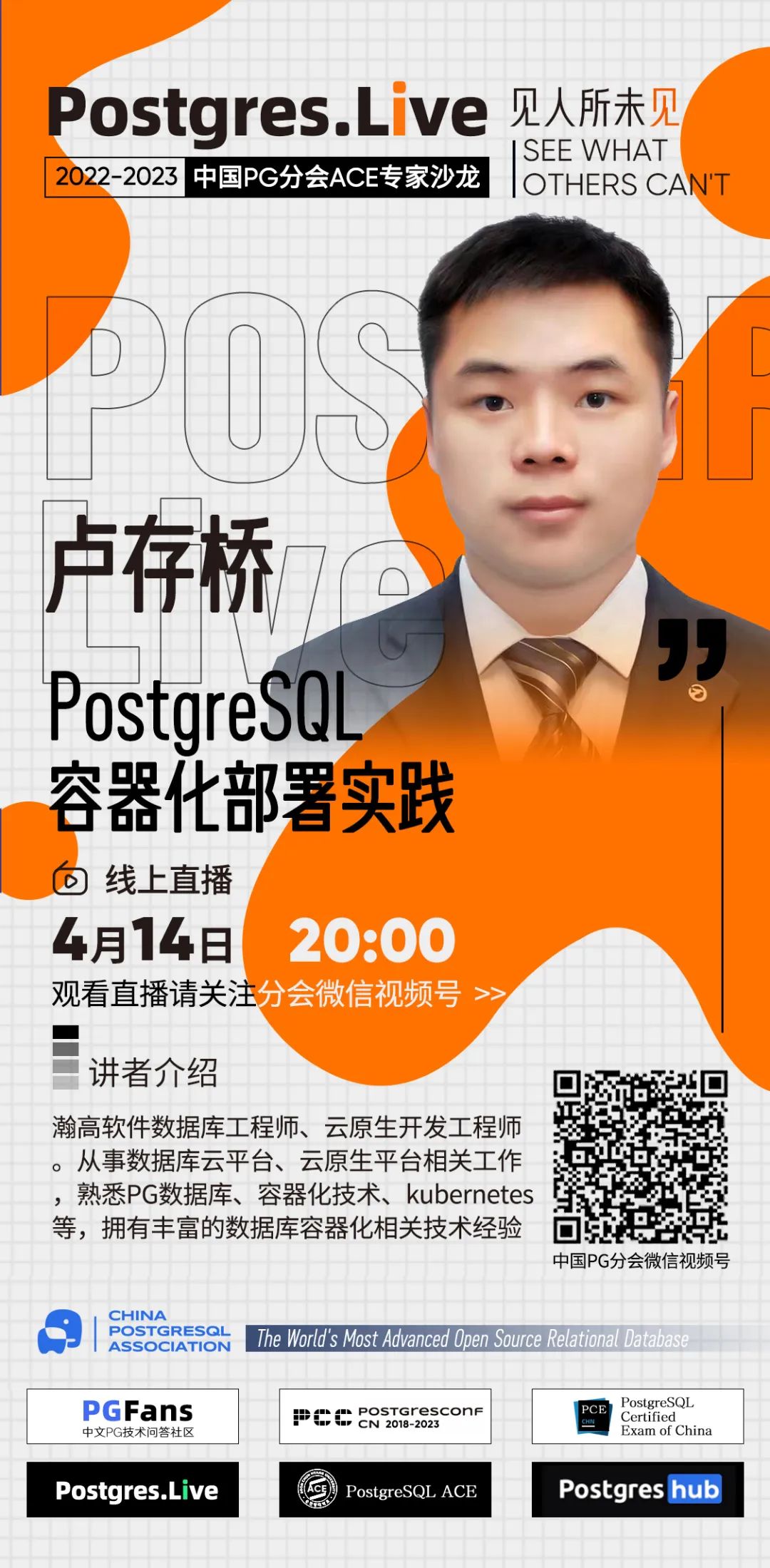 欢迎大家在 4月14日(本周五) 晚八点走入中国PG分会视频号观看直播(扫描下方海报二维码或点击上方直播预告链接进入直播间)