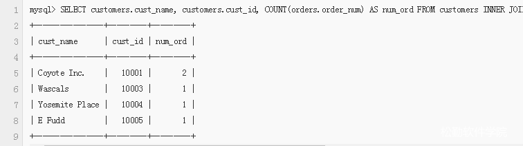 如要检索所有客户及每个客户所下订单数,使用COUNT()完成:
