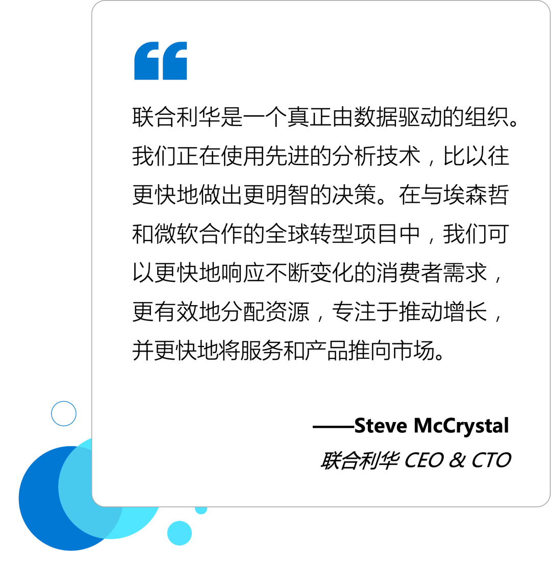 以微软智能云 Azure 作为主要云平台,联合利华能够加速产品发布、优化客户服务和提高运营效率。此外,迁移至微软智能云 Azure 也符合联合利华的可持续承诺,帮助其在抑制碳排放方面取得进一步进展。
