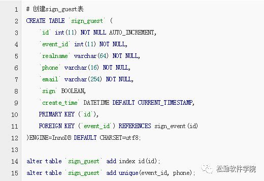 ps:我们从开始新建Django项目的时候,就使用的是SQLite3数据库,并没有用MySQL进行过任何操作,这如果直接按代码执行,只会提示错误没有guest表,对啊,是没有啊,上面只是在基本操作里,新建了guest库,但是没有在guest库下新建表,所以在执行插入数据的代码之前,我们应该先新建两个表:sign_event、sign_guest