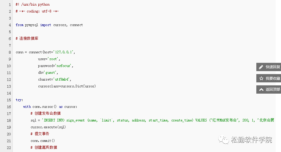 我们安装了MySQL数据库后,虽然创建了guest数据库,但是并没有创建发布会表、嘉宾表,所以如果按书中直接执行此py文件,一定会报错,提示guest表不存在!!!