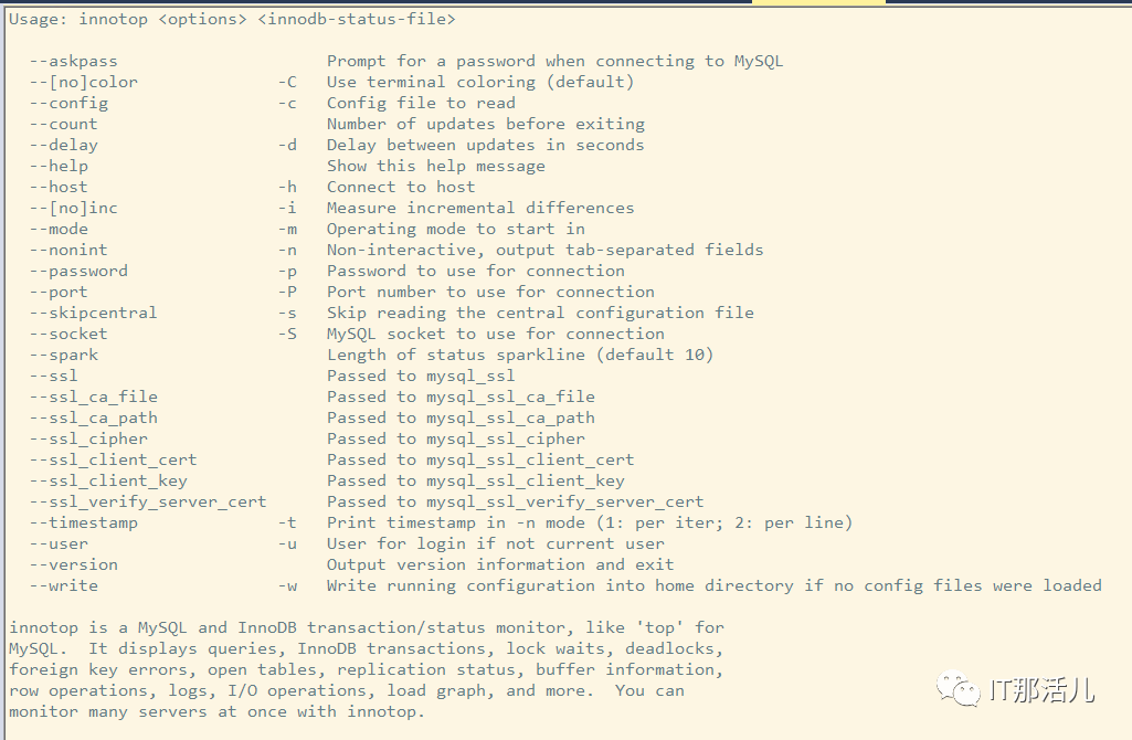 Innotop的安装使用非常简单,功能也非常强大,工具是辅助我们工作很重要的一部分,关键还在于使用工具的人能否物尽其用,我们要学会借用工具的力量把我们从重复枯燥的工作中释放出来。后续如果积累了一些使用心得和案例,再深入总结一下这个工具!