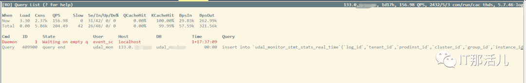Run:当前数据库中正在执行查询(Query状态的)的客户端连接数;
