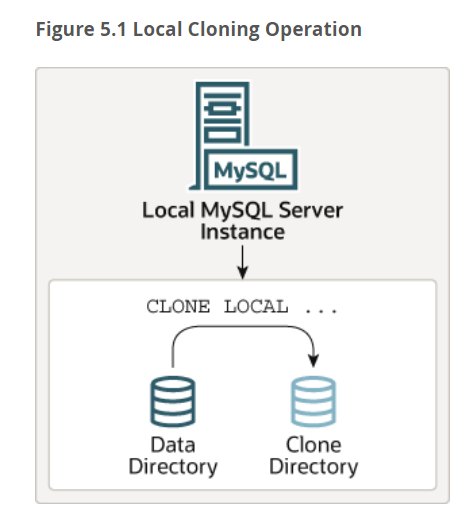 mysql> CLONE LOCAL DATA DIRECTORY = ‘/data/clone/backup’;
