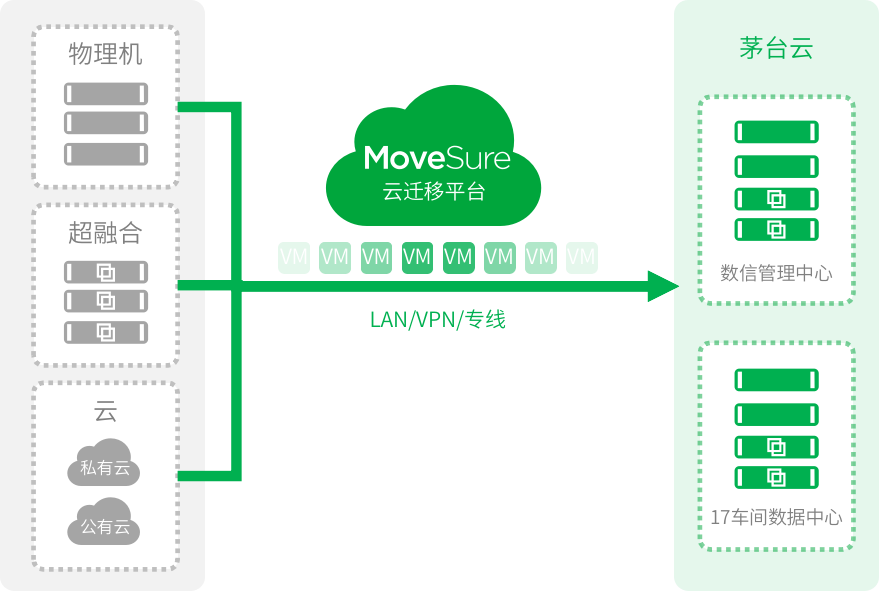 为了满足茅台集团上云及云上安全的需求,中国移动携手数腾对其基础设施、网络安全、应用数据库、运维现状和规范要求、备份容灾五大类共计近百项信息进行了采集和调研,构建出了茅台集团业务应用的全景画像。数腾基于行业最佳实践,规划出“跨异构迁移+同城互为容灾”的整体架构方案,实现70+个业务应用安全、高效地迁移至茅台云平台,并提供全面灾备保护。
