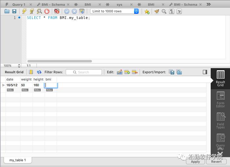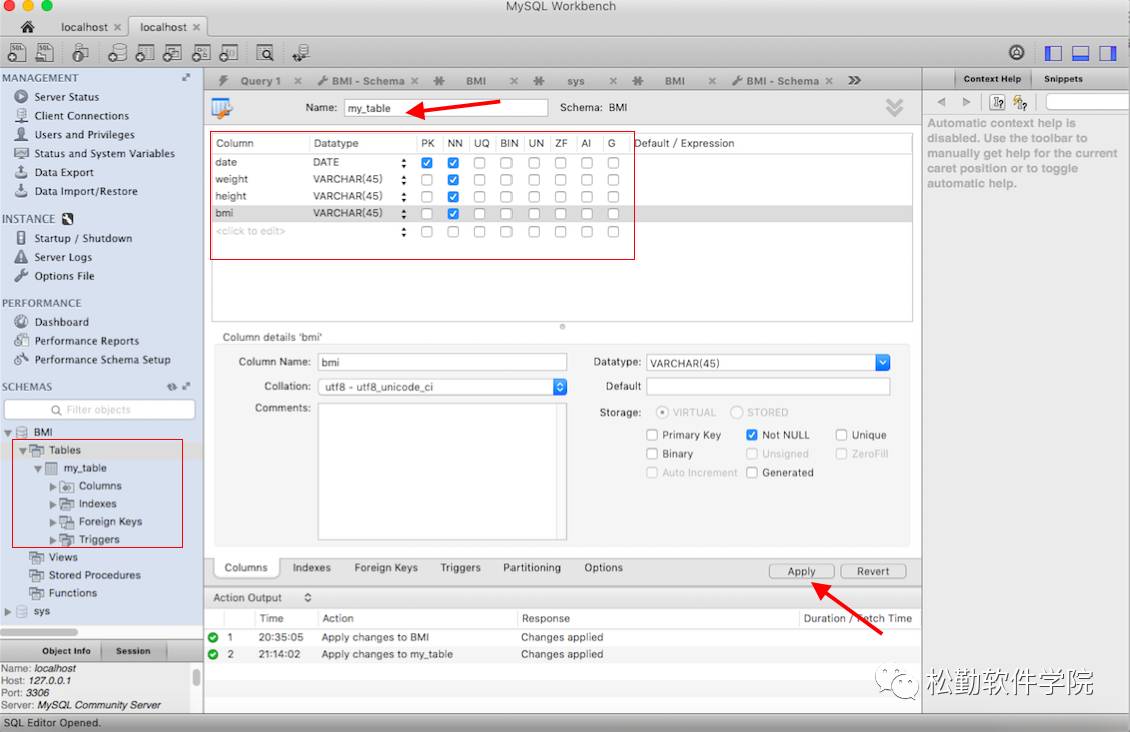 点击Apply后,Workbench仍会自动生成SQL语句,再次点击Apply,成功创建新表,在左下角可以看到: