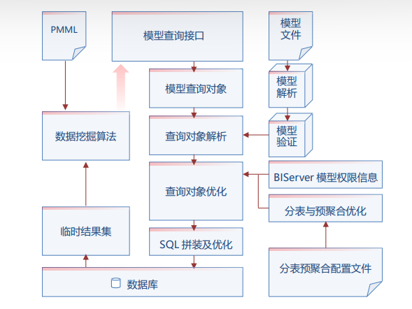 ⚫ 模型数据查询支持用户业务库分表和预聚合,用户在数据量较大的情况下,通常会做分表处理,而 在我们的系统中的模型设计时候只需要按照主表设计,分表和预聚合配置保存在一个配置文件中, 模型查询即可智能选择在哪个分表和聚合表查询。