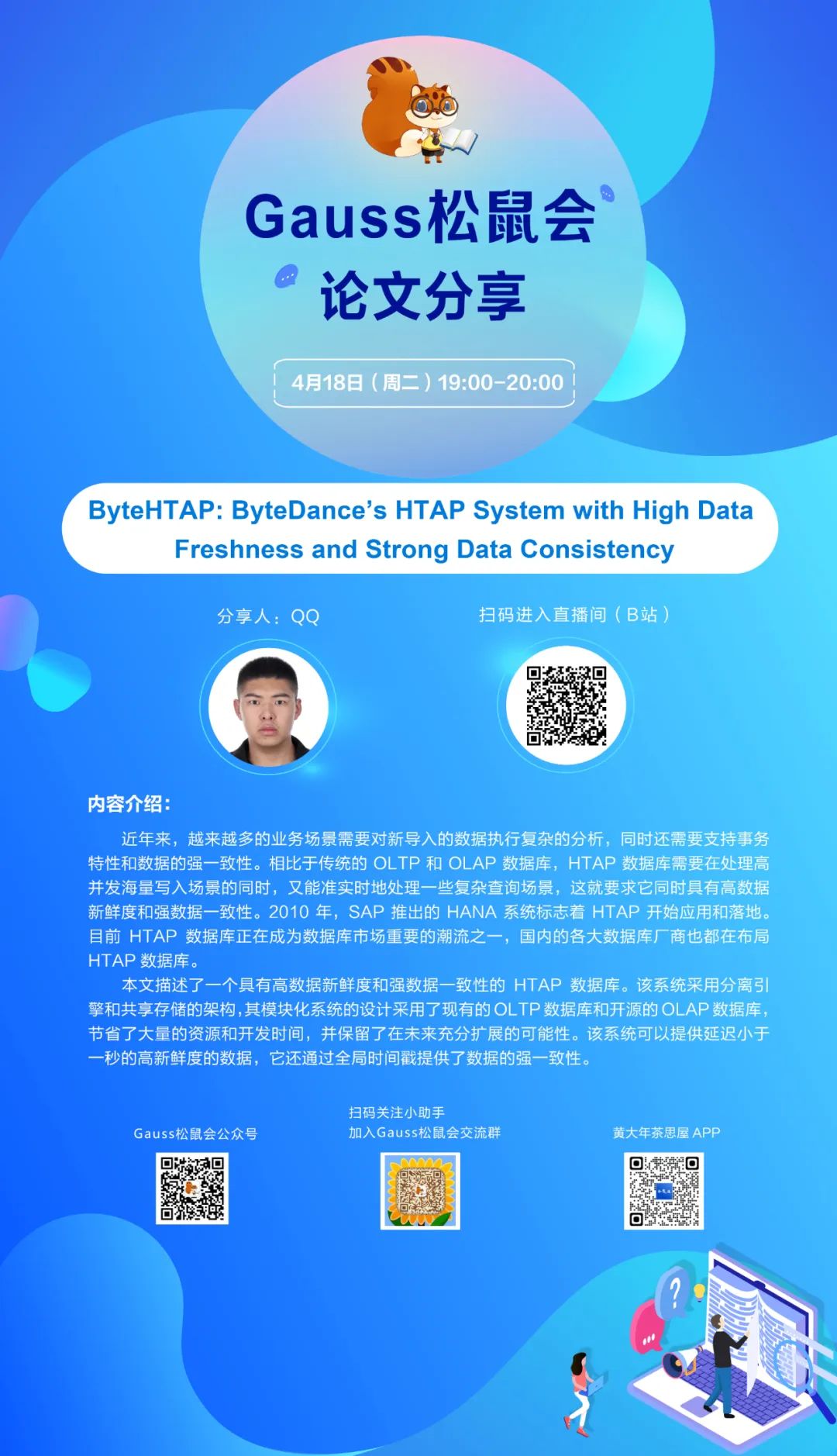 Gauss松鼠会联合openGauss 社区为大家带来论文分享专栏,本期内容由华为工程师QQ为大家带来“ByteHTAP: ByteDance’s HTAP System with High Data Freshness and Strong Data Consistency”。