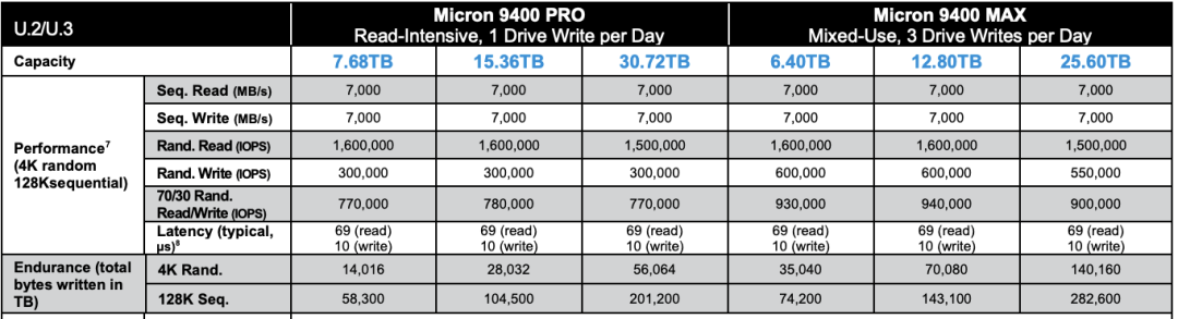 2022年镁光9400 NVMe SSD 规格说明 : https://media-www.micron.com/-/media/client/global/documents/products/product-flyer/9400_nvme_ssd_product_brief.pdf