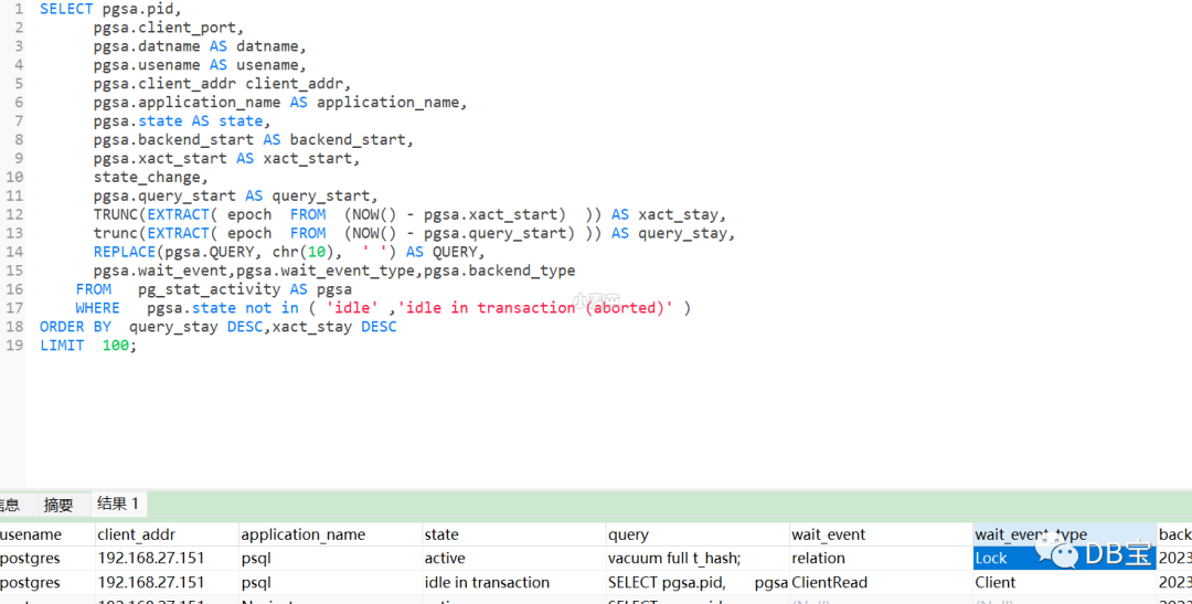 表上有活动的长事务:如果有活动的事务(如未提交的事务)在表中运行,那么 "vacuum full" 命令就无法释放该表使用的空间。因为 PostgreSQL 为了保证事务的隔离性,需要将事务执行的数据保留在数据库中,直到事务结束。