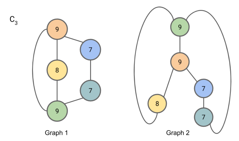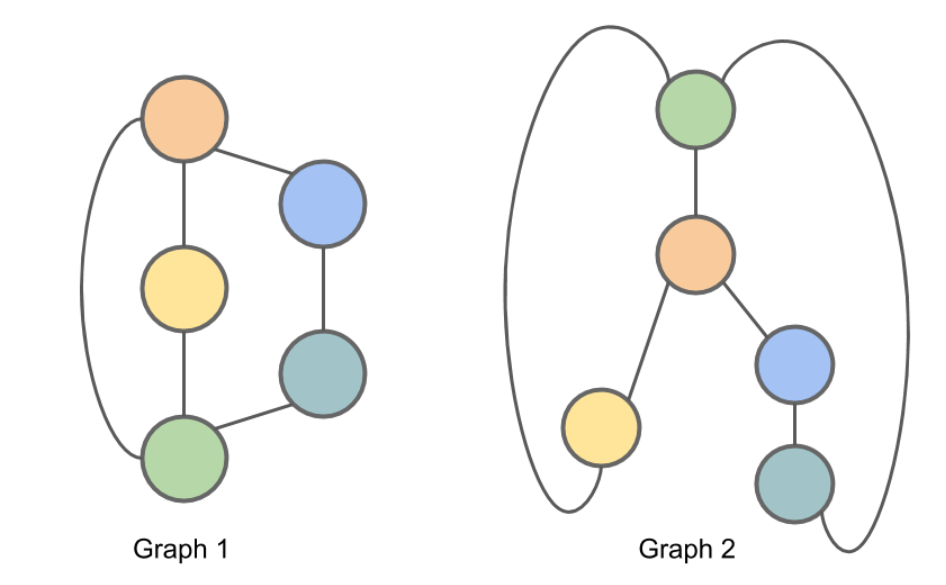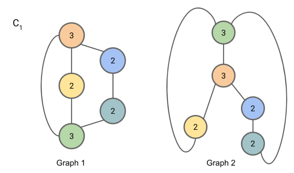我们以下面的这两个图为例(例子来源于 https://www.davidbieber.com/post/2019-05-10-weisfeiler-lehman-isomorphism-test/)。