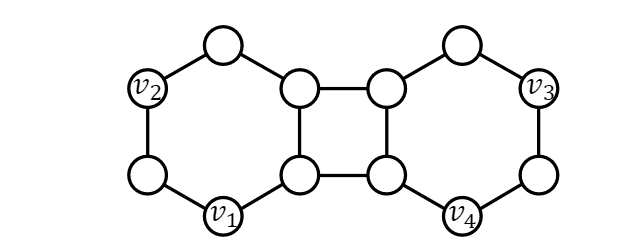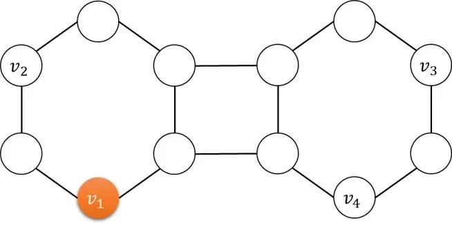 如上所述,图自编码器的想法和实现都十分简单,但它是否能够完全解决链接预测的问题?答案是否定的。以下图为例,假设我们需要分别预测链接 以及 是否存在。容易发现,在下图中,节点 是互相对称的;节点 是互相对称的。因此,在使用 GNN 得到的节点表示中, 的节点表示一定与 相同; 的节点表示则一定与 相同。从而,通过自编码器得到的链接 以及 的预测结果也一定相同。这显然是不正确的,因为在该图中节点 与节点 之间的相对位置完全不同。从而,我们知道,图自编码器无法记录两个节点间的相对位置信息,因而并不十分适用于链接预测任务。