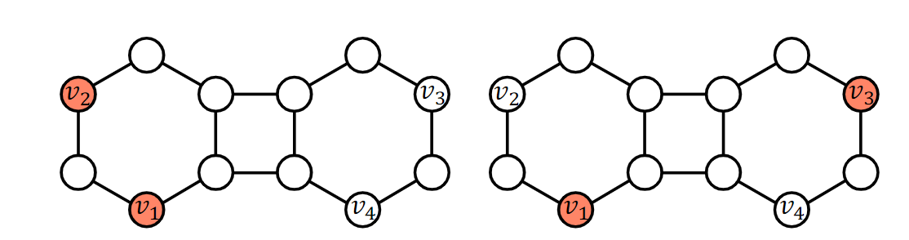 从而,链接同构的问题被严格转换成了 和 的同构问题。使用 MPNN 学习诱导出的图 的表示,我们可以增强它的表示能力。例如下图: