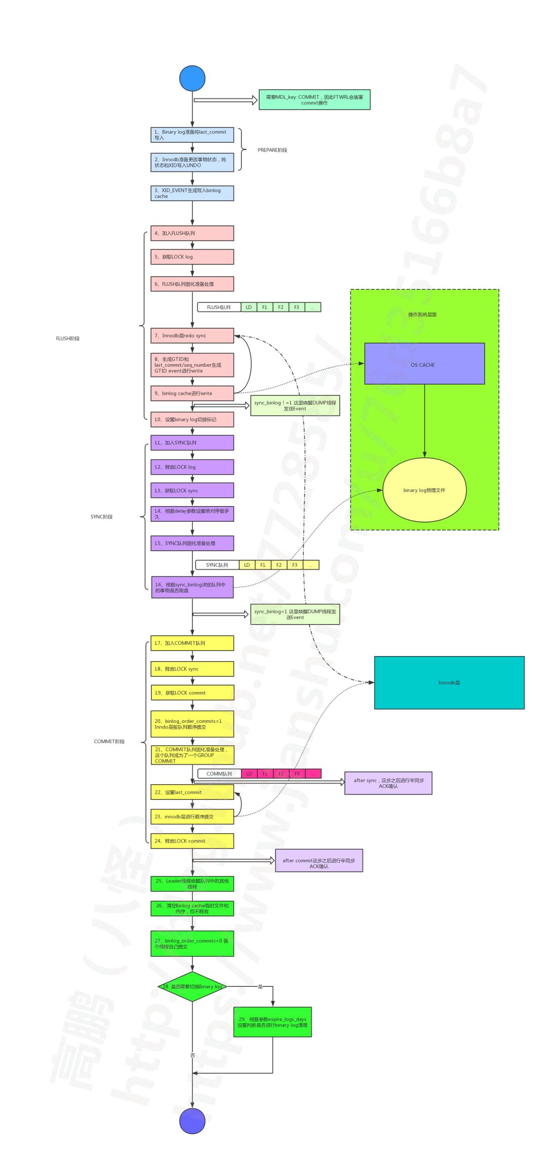 (21.) 这一步就是将COMMIT阶段的队列取出来准备进行处理。也就是这个时候COMMIT队列就不能在更改了。这个队列和FLUSH队列和SYNC队列并不一样,事务的顺序一样,数量可能不一样。