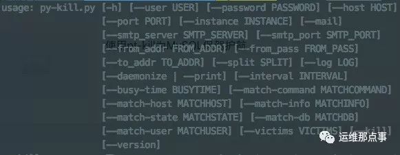 最后有个问题没解决,使用发现对于Execute状态的查询pt-kill无法生效,对Query状态的没有问题。没有去细看,然后参考pt-kill,使用Python 3.6写了一个,就叫py-kill了,支持邮件报警,多线程监控,支持Execute状态,代码和使用方法在Github,https://github.com/dongwenpeng/py-kill,需要的可以简单定制化一下,就练练手。