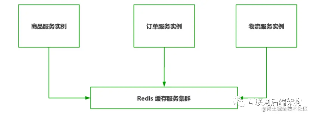 与进程内相对的,就是需要独立部署的分布式缓存服务。最常用的是基于 Redis 这种内存型 NoSQL 数据库,对整体架构中的应用数据进行集中缓存。