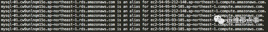 $ while true; do host mysql-01.cw9unlnqm15o.ap-northeast-1.rds.amazonaws.com | grep alias ; sleep 1; done