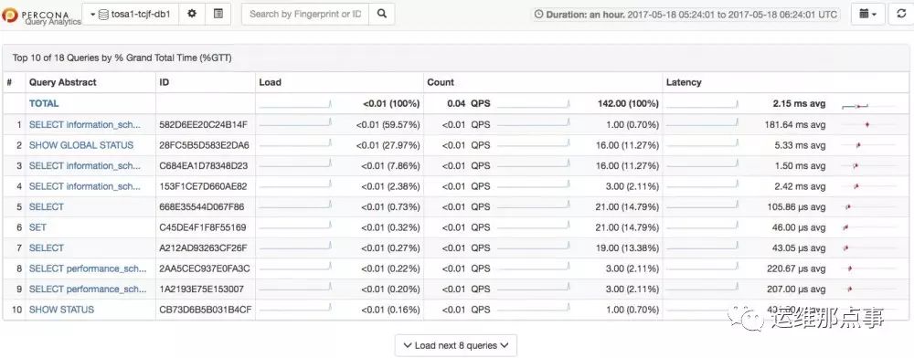 Query Analytics(QAN)是用来搜集指令并作性能分析的,其组件分别说明如下: