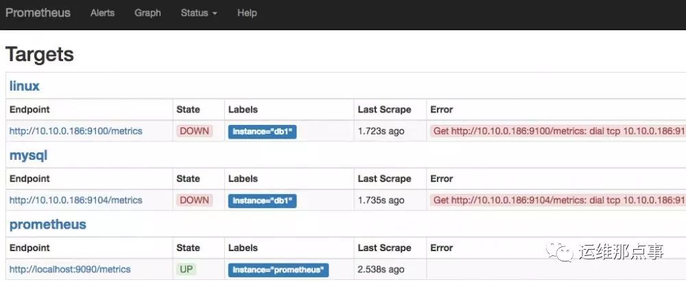 instance: db110.10.0.186是我们数据库主机的IP,端口则是对应的exporter的监听端口。